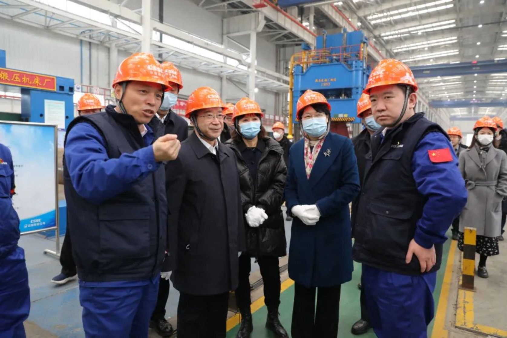 2月9日,工業(yè)和信息化部黨組成員、總工程師田玉龍一行到中國船舶集團武昌造船開展綠色智能船舶產(chǎn)業(yè)發(fā)展專題調研,湖北省委常委、政法委書記肖菊華,武漢市委副書記、政法委書記李義龍,中國船舶集團黨組成員、總會計師賈海英,公司黨委書記、董事長姜濤,黨委副書記、總經(jīng)理梁師清參加調研。