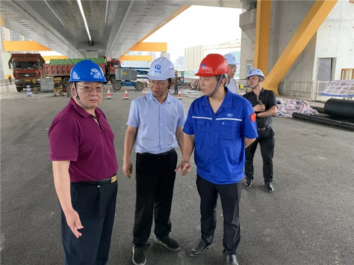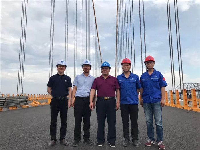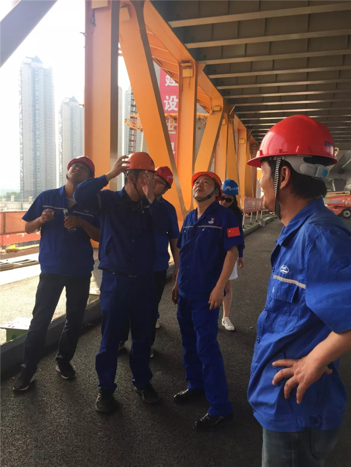 田軍首先親切慰問了項(xiàng)目部成員,詳細(xì)了解了楊泗港大橋目前的進(jìn)展情況,察看了現(xiàn)場(chǎng)施工情況。田軍對(duì)楊泗港大橋現(xiàn)場(chǎng)安裝工作取得的成績(jī)表示祝賀,并對(duì)項(xiàng)目后期總體計(jì)劃的實(shí)施和部署提出了指導(dǎo)性意見。田軍要求,項(xiàng)目部要根據(jù)總包工期要求做好工程總體計(jì)劃安排和跟蹤,在施工過程中要嚴(yán)格遵守工藝要求、堅(jiān)決執(zhí)行質(zhì)量紀(jì)律,同時(shí)做好高空、臨邊作業(yè)及防暑降溫等措施,確保項(xiàng)目保質(zhì)保量、安全高效地推進(jìn)。