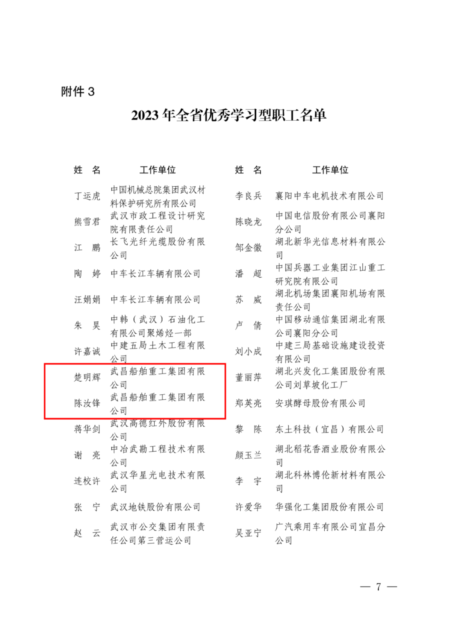 近日湖北省總工會和武漢市總工會紛紛傳來喜訊中國船舶集團武昌造船五名職工分別獲評省市級優秀帶徒名師”“學習型職工