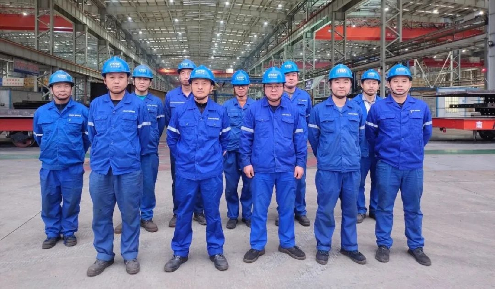 重工公司裝焊制造中心裝配一組年度主要完成黃茅海跨海大橋、紫云橋的單元件以及1100TEU集裝箱船船體分段等項(xiàng)目裝配工作。班組秉承“一次到位、一次做好、一次做對(duì)”的自主質(zhì)量管理要求,精益求精,實(shí)現(xiàn)裝配一次交檢合格率100%。