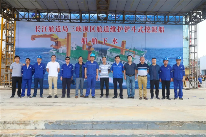 9月20日上午8點58分,由武船集團船舶公司為長江航道局建造的鏟斗式挖泥船在武昌總部順利下水。