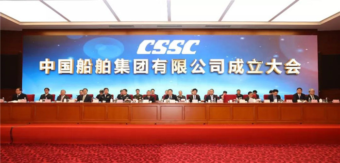 11月26日,中國船舶集團有限公司成立大會在京隆重舉行。國務院國資委黨委書記、主任郝鵬,中央組織部副部長張建春,工信部黨組成員、副部長,國家國防科工局黨組書記、局長張克儉,工信部黨組成員、副部長辛國斌,軍方有關領導人員,中央紀委國家監委駐國資委紀檢監察組組長、國務院國資委黨委委員陳超英,國務院國資委黨委委員、副主任翁杰明,上海市委常委、副市長吳清,國務院國資委黨委委員、秘書長彭華崗,交通運輸部總工程師姜明寶,應急管理部總工程師吳鑫,中國船舶集團黨組書記、董事長雷凡培等領導出席成立大會。中國船舶集團黨組副書記、總經理楊金成主持會議。