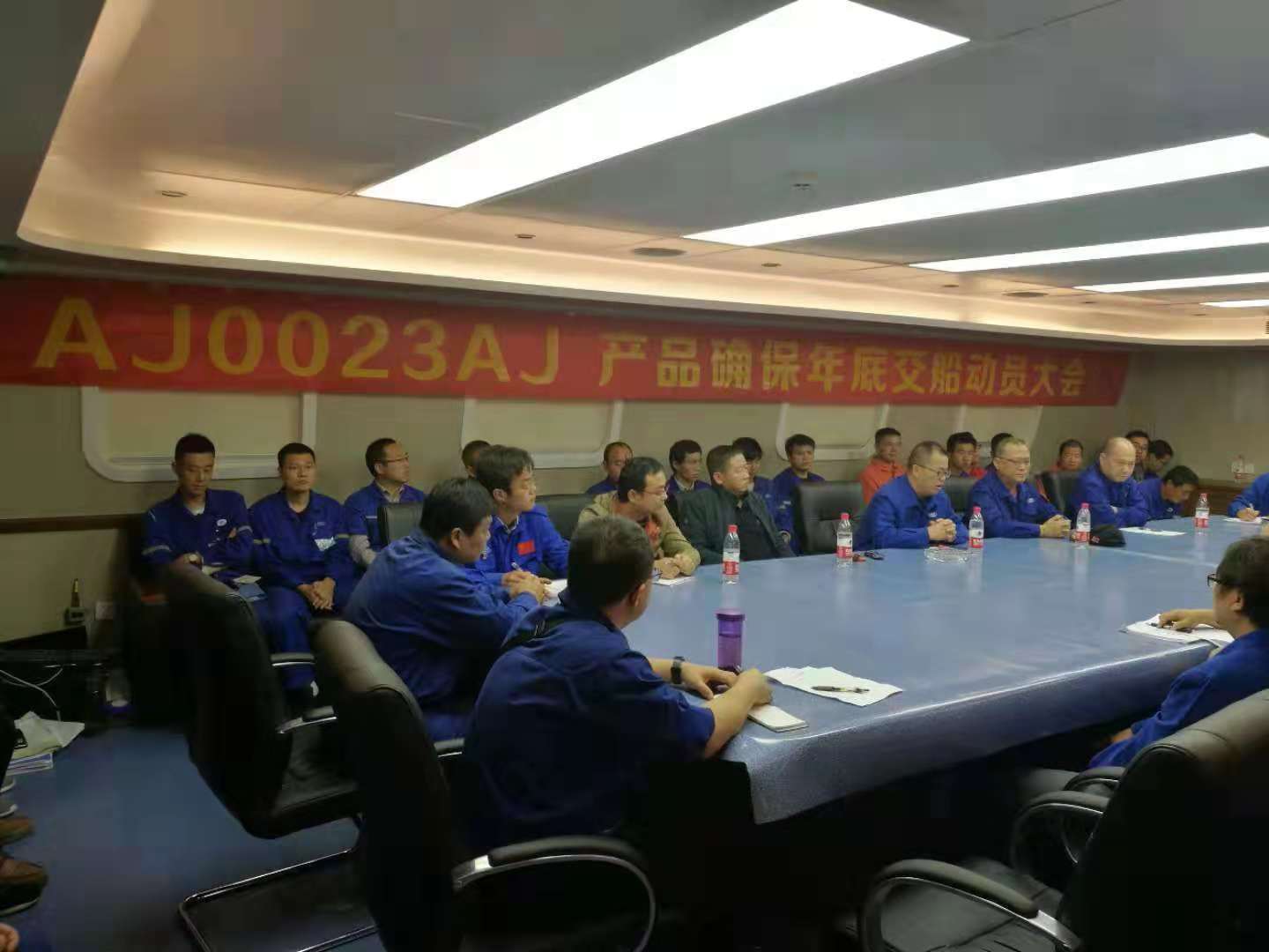 該產品交付工作時間緊、任務重,交船隊各級參試人員將貫徹落實動員會精神,把各項工作抓緊抓實抓到位,通力協作,齊心合力,確保年底交船。