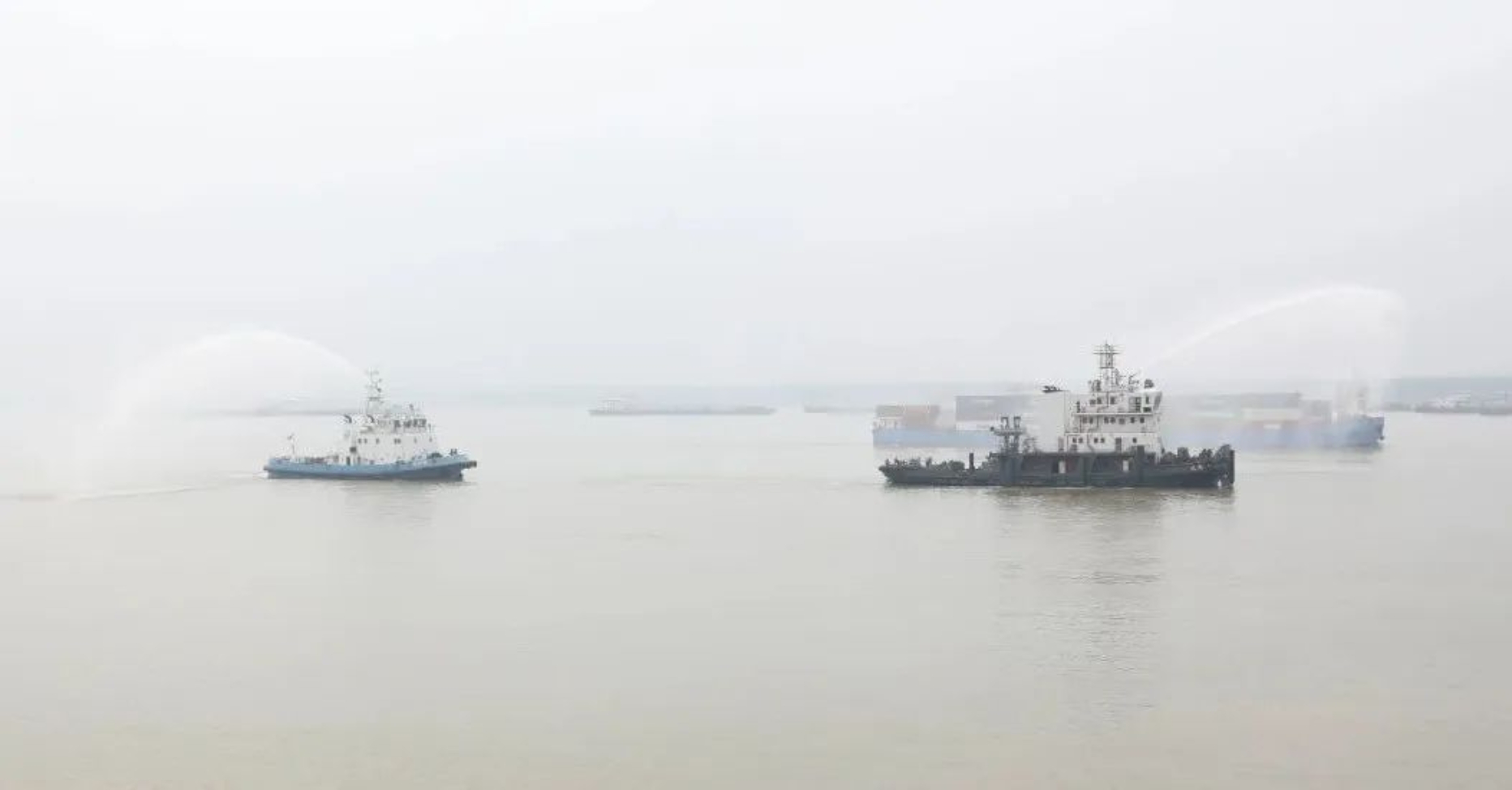 武昌造船拖輪進行江上表演,向家屬們致以最高禮節