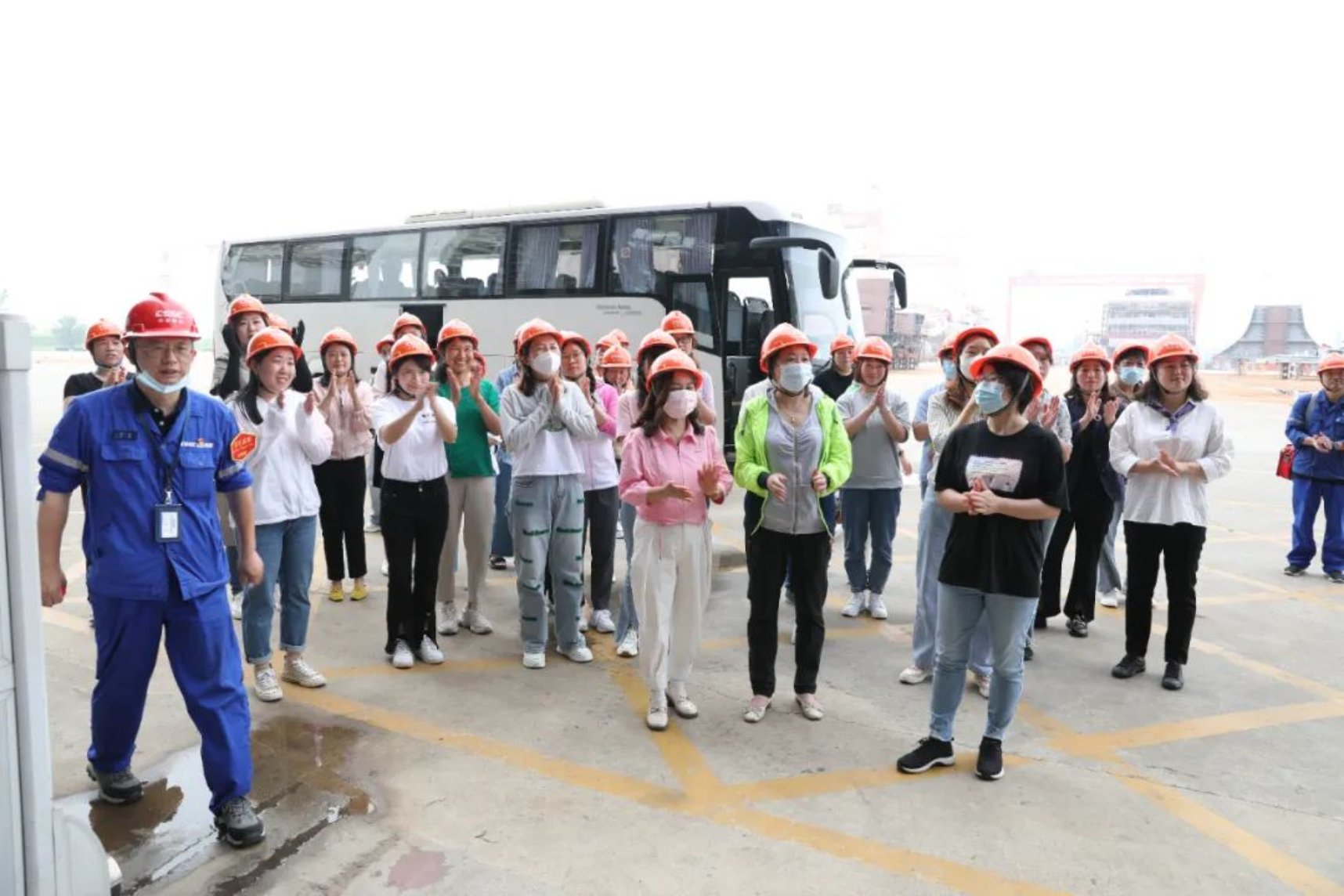 公司領導向職工家屬們介紹了武昌造船的主責主業和光榮使命。家屬們先后參觀了偉人廣場、民船生產線、碼頭、下水滑道、39米跨、管加智能生產線、重工橋梁生產線、職工食堂、職工活動中心等,了解了武昌造船發展史,以及自己親屬平日里工作、生活的環境。