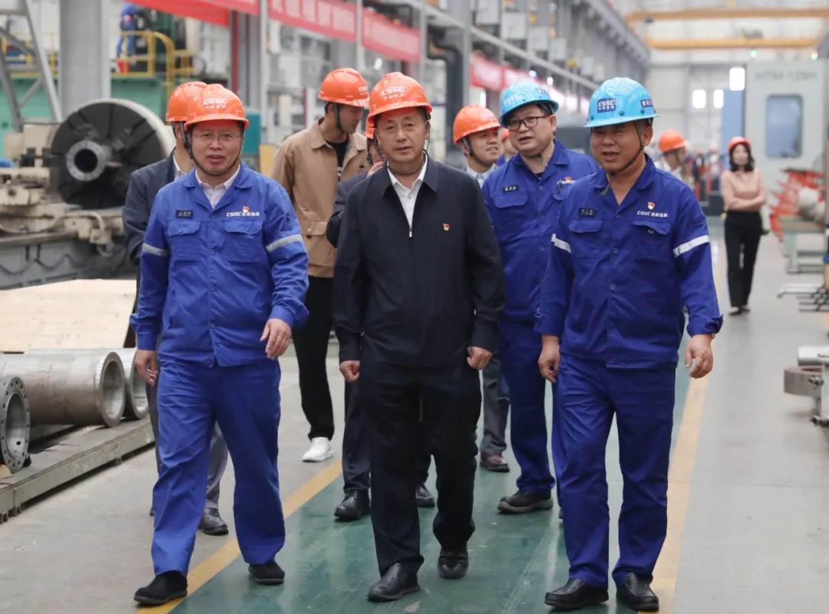 陳紅山一行首先來(lái)到了武昌造船雙柳廠區(qū)偉人廣場(chǎng)瞻仰毛主席銅像,隨后深入車間一線,參觀了武昌造船機(jī)電公司輕型加工車間生產(chǎn)現(xiàn)場(chǎng)、黨建活動(dòng)陣地和勞模工作室。