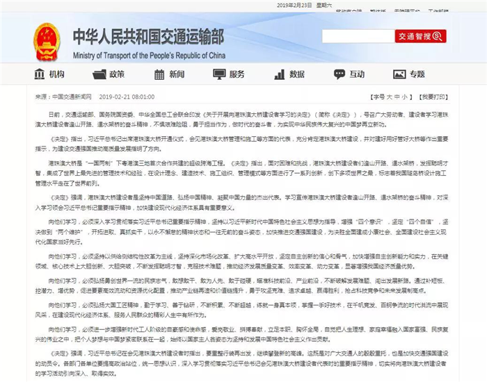 交通運輸部、國務院國資委、中華全國總工會聯(lián)合決定深入開展向港珠澳大橋建設(shè)者學習活動,號召學習港珠澳大橋建設(shè)者逢山開路、遇水架橋的奮斗精神。
