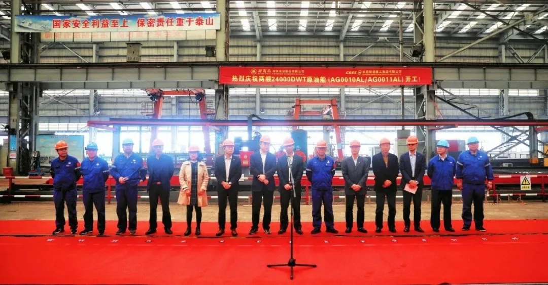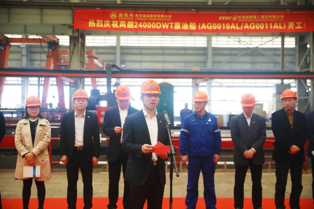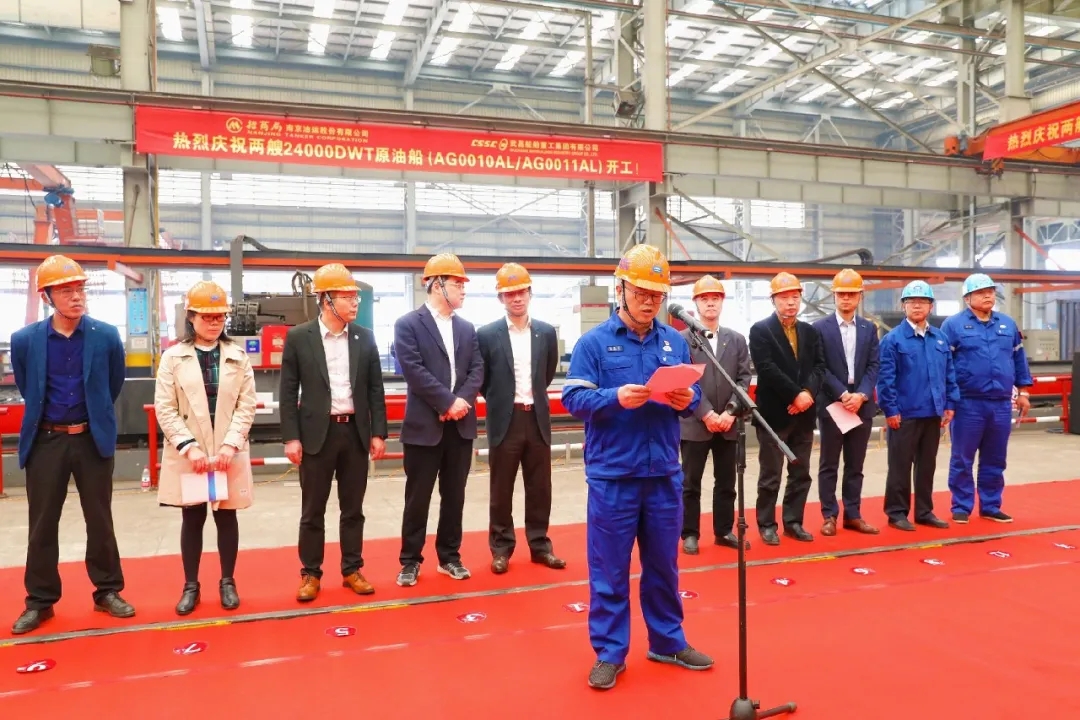 2020年10月30日10時(shí)18分,由中國船舶武船集團(tuán)為招商局南京油運(yùn)股份有限公司建造的兩艘24000DWT原油船在雙柳廠區(qū)順利開工。招商局南京油運(yùn)股份有限公司總經(jīng)理周斌、中國船級(jí)社武漢分社副總經(jīng)理唐建、中國船舶及海洋工程設(shè)計(jì)研究院所長助理朱建璋、武昌船舶重工集團(tuán)有限公司副總經(jīng)理姚勝華等參加開工儀式。