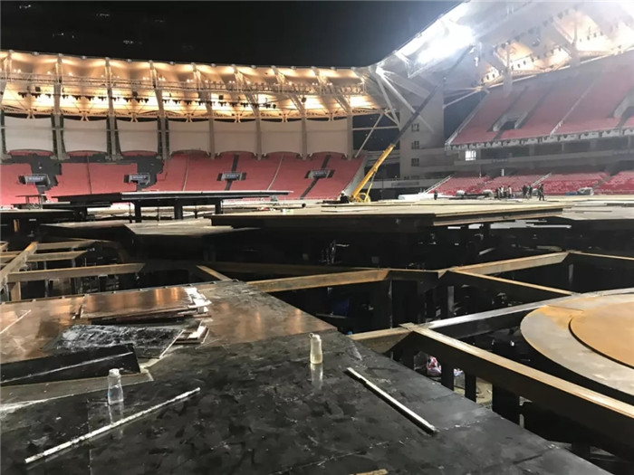 “如果真的按照最初構想方案實施,我們可能需要破壞地下原有電路、管路系統,并重新構建,對于我們而言時間過于緊迫,在邊討論、邊設計、邊制造的條件下,這個完美的夢想最終沒能變成現實,確實有點遺憾。”舞臺項目工程技術負責人許露說道。