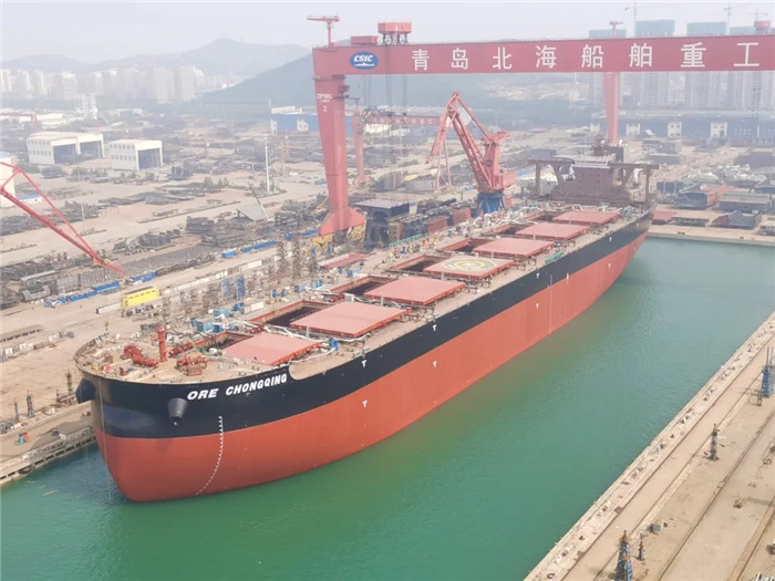 5月15日,中國船舶武船集團北船重工為工銀金融租賃有限公司和招商局能源運輸股份有限公司建造的32.5萬噸礦砂船4號船順利出塢,安全靠泊碼頭,為按計劃實現交付節點奠定了堅實基礎。
