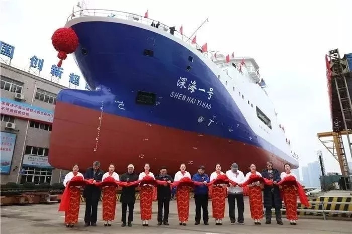 2018年12月8日   我國自主研制的第一艘載人潛水器支持母船?C?C“深海一號”在武船集團總部順利下水。