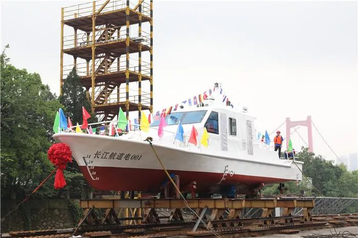 ▲“長(zhǎng)江航道電001”準(zhǔn)備下水