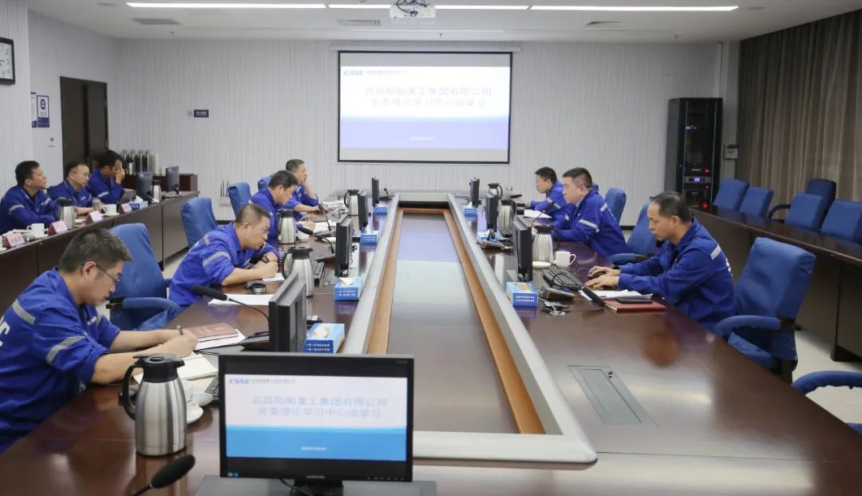 11月4日下午,中國船舶武昌造船黨委開展黨委理論學習中心組學習,圍繞三年特別行動計劃和“精益管理”“改革與高質量發展”“效率效益提升”開展專題研討,公司黨委書記、董事長姜濤主持會議,公司領導梁師清、唐瀅、陳仲明、左照海、劉祎,公司黨委委員李建操參加學習,紀檢部、綜管部、戰略部、企劃部、人力資源部、信息部、安保部、保密部等單位主要負責人列席。
