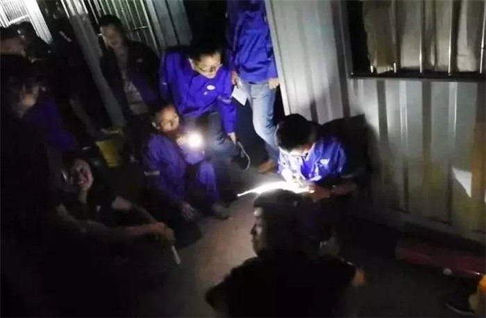 ▲項目組在停電的情況下仍在堅持開會消除船東意見