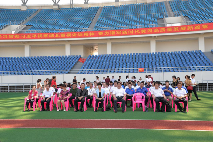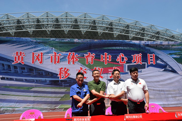 近日,由武船集團重裝公司投資建設的黃岡市體育中心項目在體育中心現場順利完成移交。黃岡市政府副市長陳少敏、市委副秘書長陳裕勇,武船集團副總經理楊少稀,重裝公司黨委書記、董事長李建操、副總經理魏翔、黃岡白潭湖片區黨工委書記、籌委會主任孫迎松,黃岡白潭湖投資發展有限公司黨委書記、董事長、總經理楊名森,市體育局局長余覓等領導參加了移交儀式。市國資委、市財政局、市住建委、市國土資源局、市規劃局、市審計局、市房管局、市城投公司、中南建筑監理公司、造價監管湖北省建行(黃岡支行)等單位見證了移交儀式。