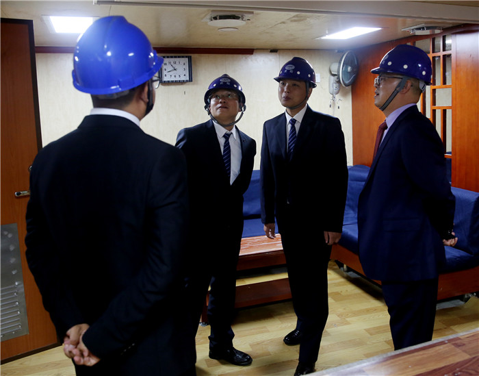 在有關負責人的陪同下,姚勝華重點檢查了該艦駕駛室、機艙、廚房、餐廳、臥室等主要區域,詳細了解當前各區域在實施過程中重點、難點,并針對一些疑難問題,提出解決方案。