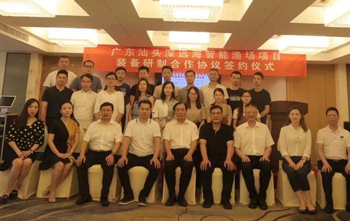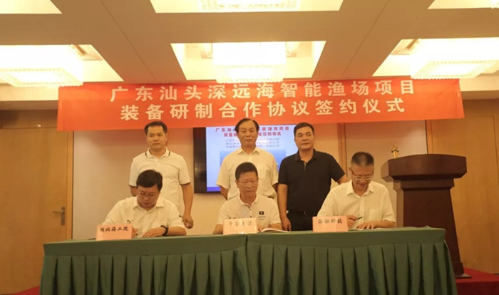 2018年8月22日,武船集團湖北海洋工程裝備研究院有限公司及中船重工海融裝備(海南)有限公司與廣州中譽科技產業(yè)控股集團有限公司在廣東省汕頭市舉行簽約儀式。在武船集團黨委書記、董事長楊志鋼,汕頭市海洋與漁業(yè)局局長周昭勇的共同見證下,與中譽集團簽訂了《廣東汕頭深遠海智能漁場項目裝備研制合作協(xié)議》。