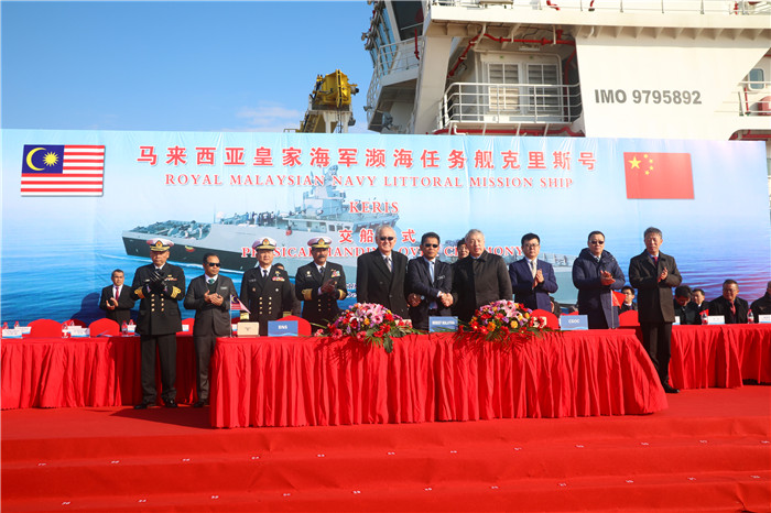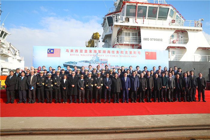 12月31日,中國船舶集團(tuán)有限公司所屬武昌船舶重工集團(tuán)有限公司為馬來西亞海軍建造的瀕海任務(wù)艦首艦在中國船舶武船集團(tuán)江蘇啟東基地交付。