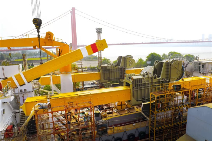 經過9天連續作業,9月15日,長江三峽壩區航道維護鏟斗挖泥船鋼樁定位系統3組巨型鋼樁部件船臺安裝任務按期順利完工,鋼樁定位系統制造安裝工程總量達到70%,為挖泥船按期下水提供了先決條件。