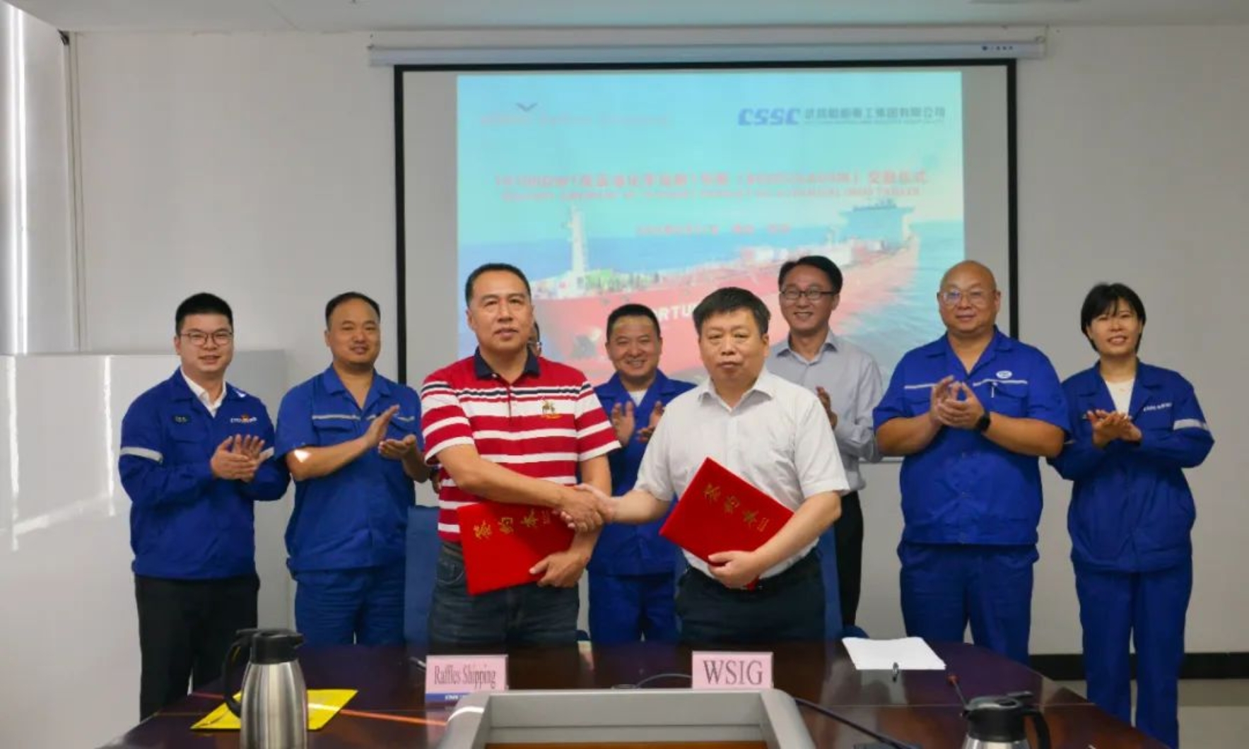 8月31日上午9時,中國船舶集團武昌造船為新加坡萊福士航運集團建造的 19700載重噸化學(xué)品船1號船 正式簽字交付!船東代表、上海富洋以及武昌造船的相關(guān)領(lǐng)導(dǎo)和嘉賓出席交船儀式。