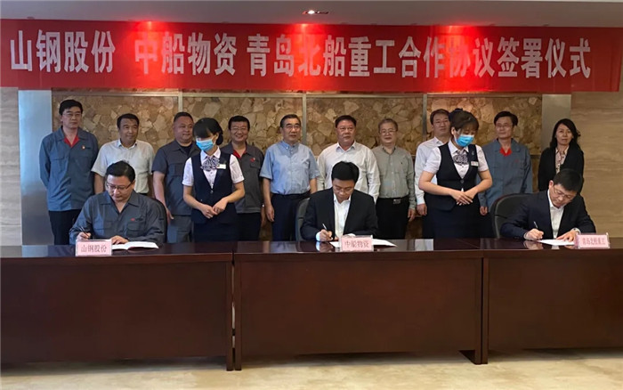 5月18日-19日,北船重工和中國船舶集團有限公司所屬物資公司分別與山鋼集團、五礦營鋼在濟南、北京兩地簽訂了船板戰略合作協議。