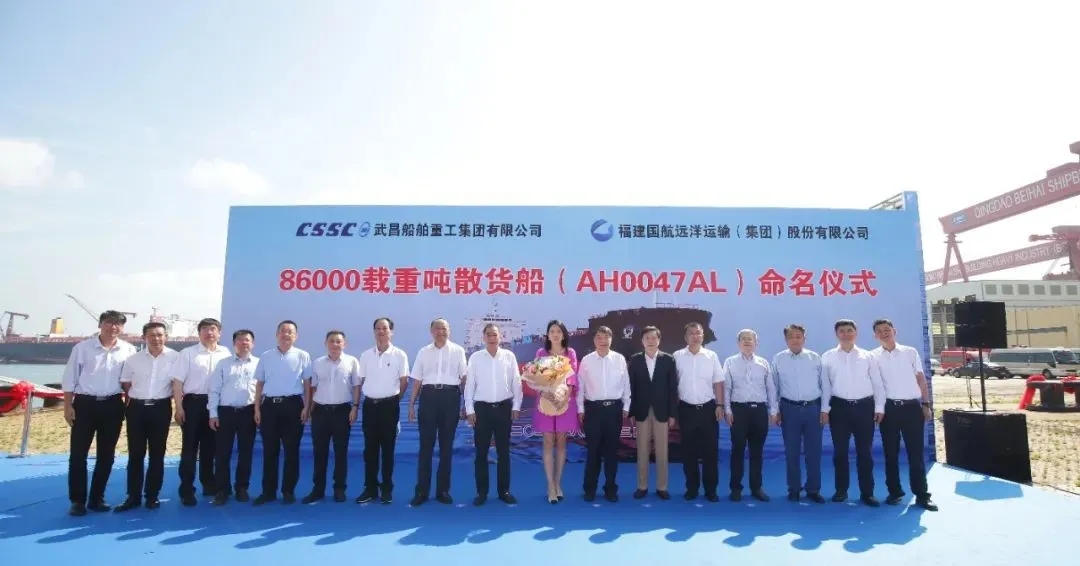 中國船舶武船集團北船重工舉行86000噸散貨船首制船命名暨啟航儀式