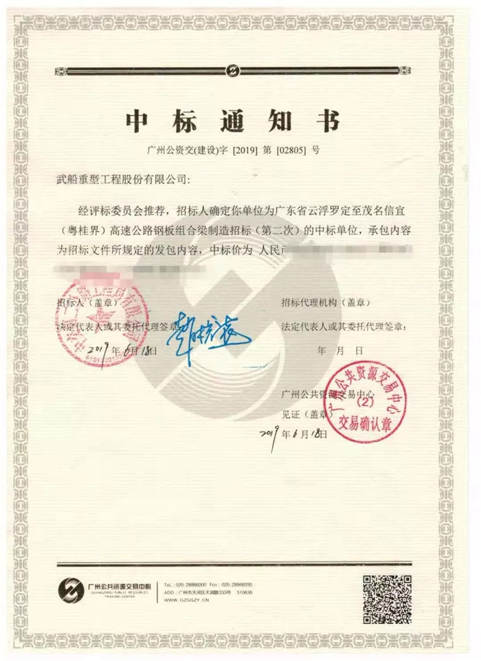 近日,武船重工股份中標廣東省云浮羅定至茂名信宜(粵桂界)高速公路鋼板組合梁制造項目。