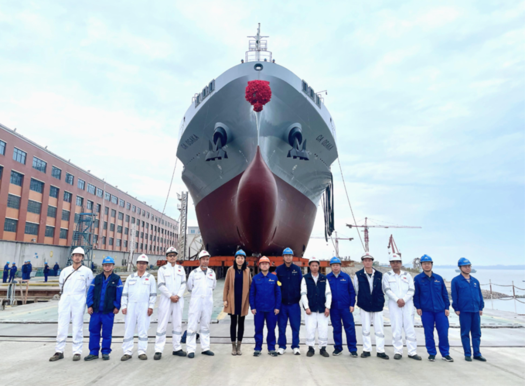 該船是武昌造船為CA SHIPPING(中船租賃和亞海航運(yùn)成立的合資公司)建造的四艘1100TEU集裝箱系列船的第二艘船,該船順利下水標(biāo)志著公司該系列船節(jié)拍化建造再提速。武昌造船黨委委員、副總經(jīng)理劉祎,日本船級(jí)社,哥倫比亞船舶管理公司等相關(guān)單位人員出席下水活動(dòng)。