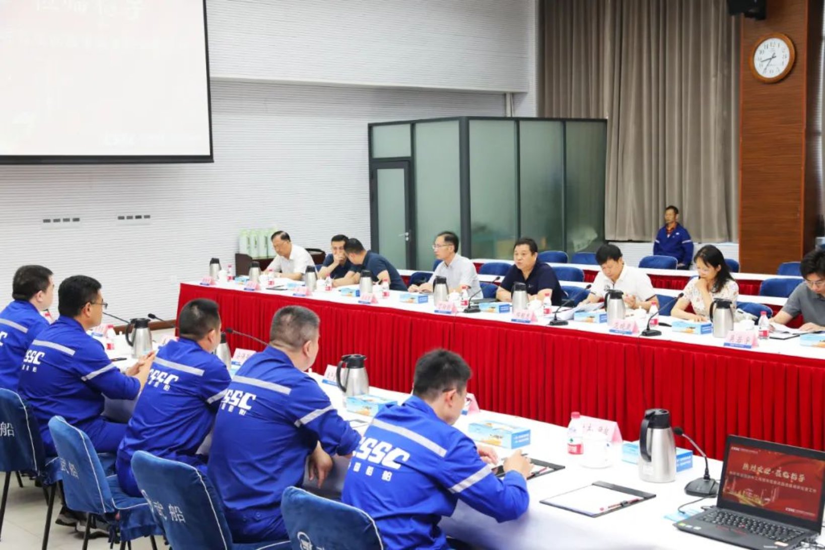 7月13日,國防科工局副司長丁向明一行到中國船舶集團武昌造船調研檢查安全生產工作,中國船舶集團公司質量安環部有關領導參加調研檢查工作。公司黨委書記、董事長姜濤,黨委副書記、總經理梁師清及相關部門負責人參加調研檢查。