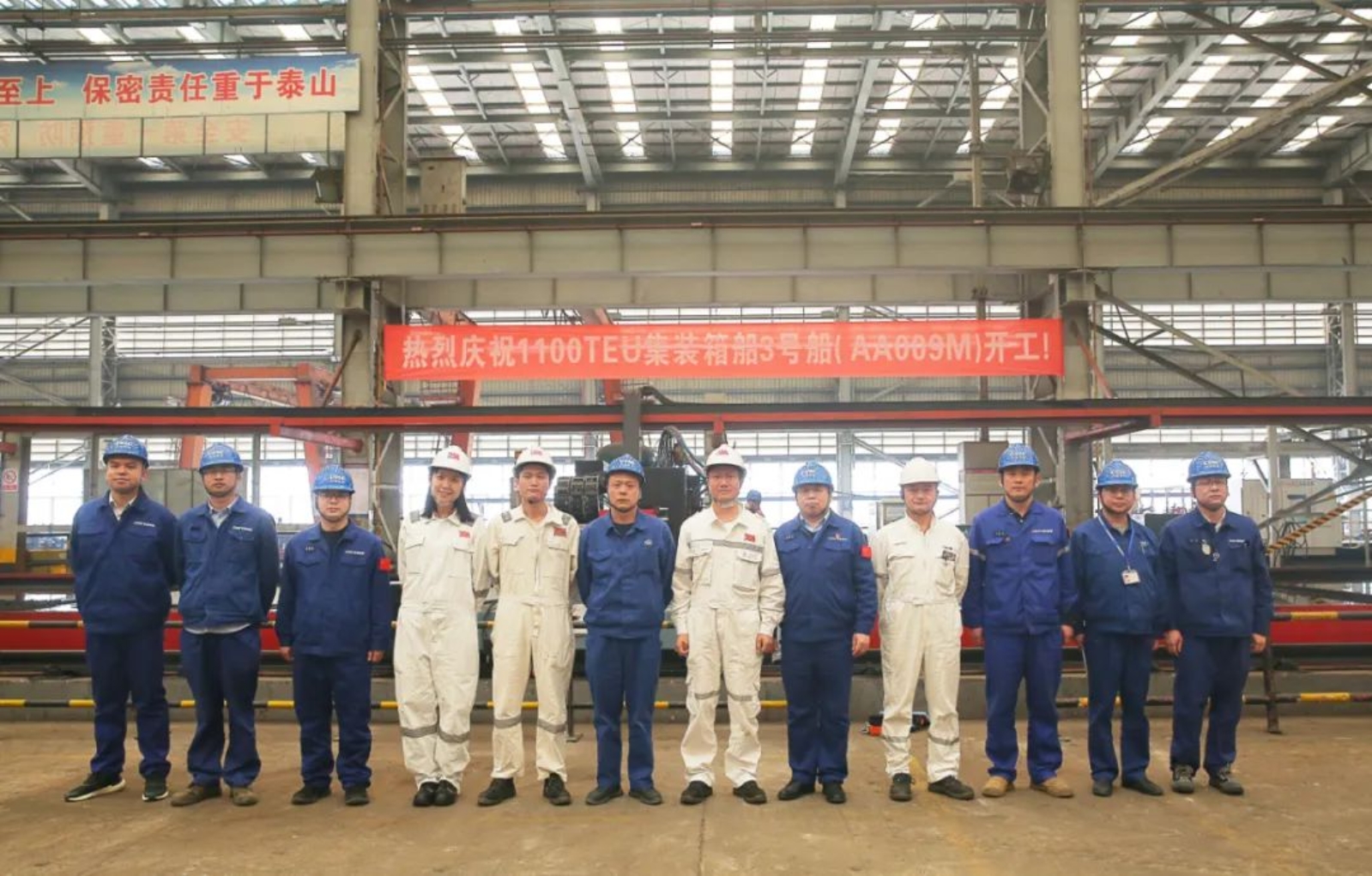 3月14日上午11時18分,中國船舶集團武昌造船為CA Shipping建造的4艘1100TEU集裝箱船中的3號船在武昌造船雙柳廠區(qū)順利開工。船東代表、哥倫比亞船舶管理公司、NK船級社相關(guān)領(lǐng)導(dǎo)以及公司相關(guān)部門代表、產(chǎn)品三總師參加開工儀式。